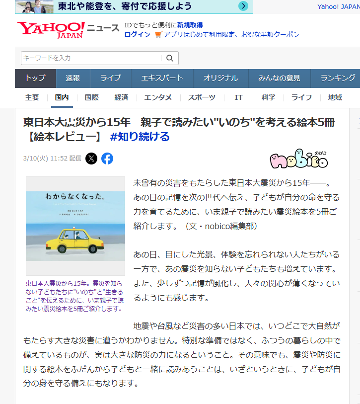 このたび、PHPの子育てサイト[nobico]で紹介された記事がYahoo!ニュースでも取り上げられ,